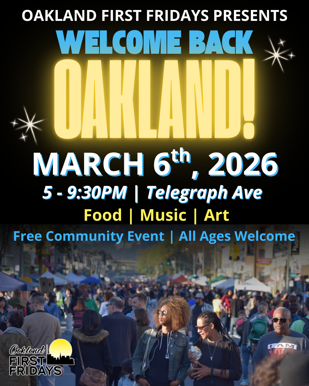 Oakland, we’re back and ready for another unforgettable year! Kick off the 2026 Oakland First Fridays season with a night full of food, music, art, and community love. Let’s celebrate our return, reconnect with old friends, and experience the energy that makes The Town shine.
