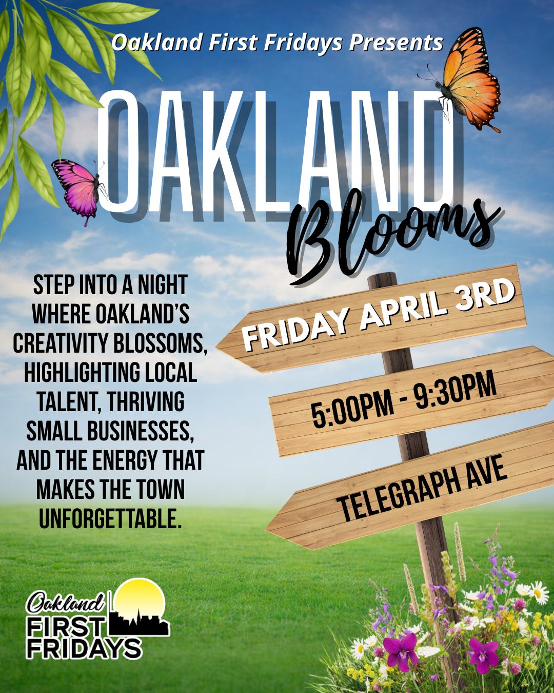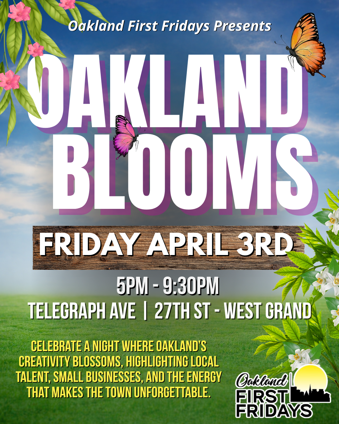 Spring is in full bloom, and so is Oakland! Join us for Oakland Blooms, a vibrant evening filled with art, music, food, and culture. Let’s celebrate growth, creativity, and the season of renewal as our city comes alive with color and connection.